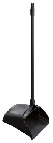 Kunststof blik met steel. Schoonmaken zonder bukken. Voorzien van wielen aan de achterzijde.